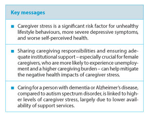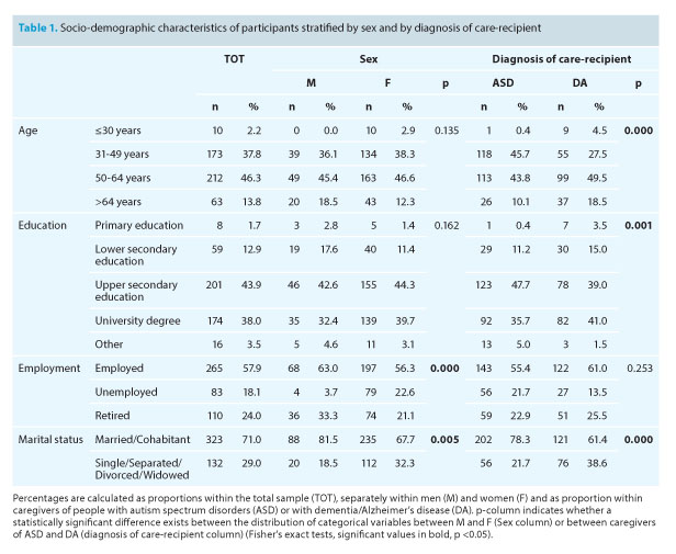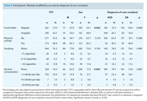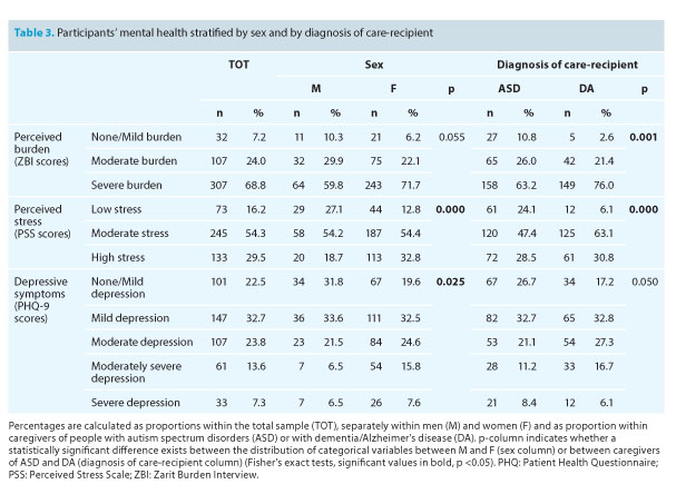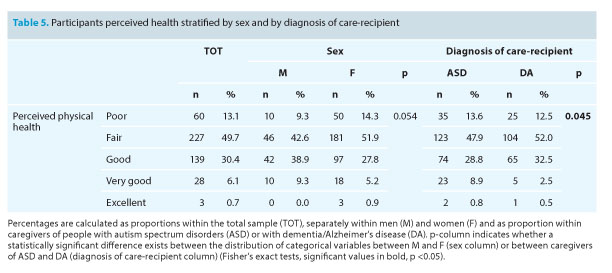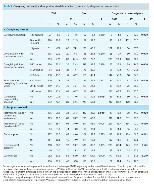 Borgi M, D’Amore A, Chiarotti F, Ruocco A, Capuano E, Vitali S, Ortona E, Petrini M. Sex and gender differences in health among informal caregivers of individuals with autism spectrum disorder and dementia/Alzheimer’s disease: evidence from an Italian study. J Sex Gender Specif Med 2025;11(3):125-137. doi 10.1723/4600.46067